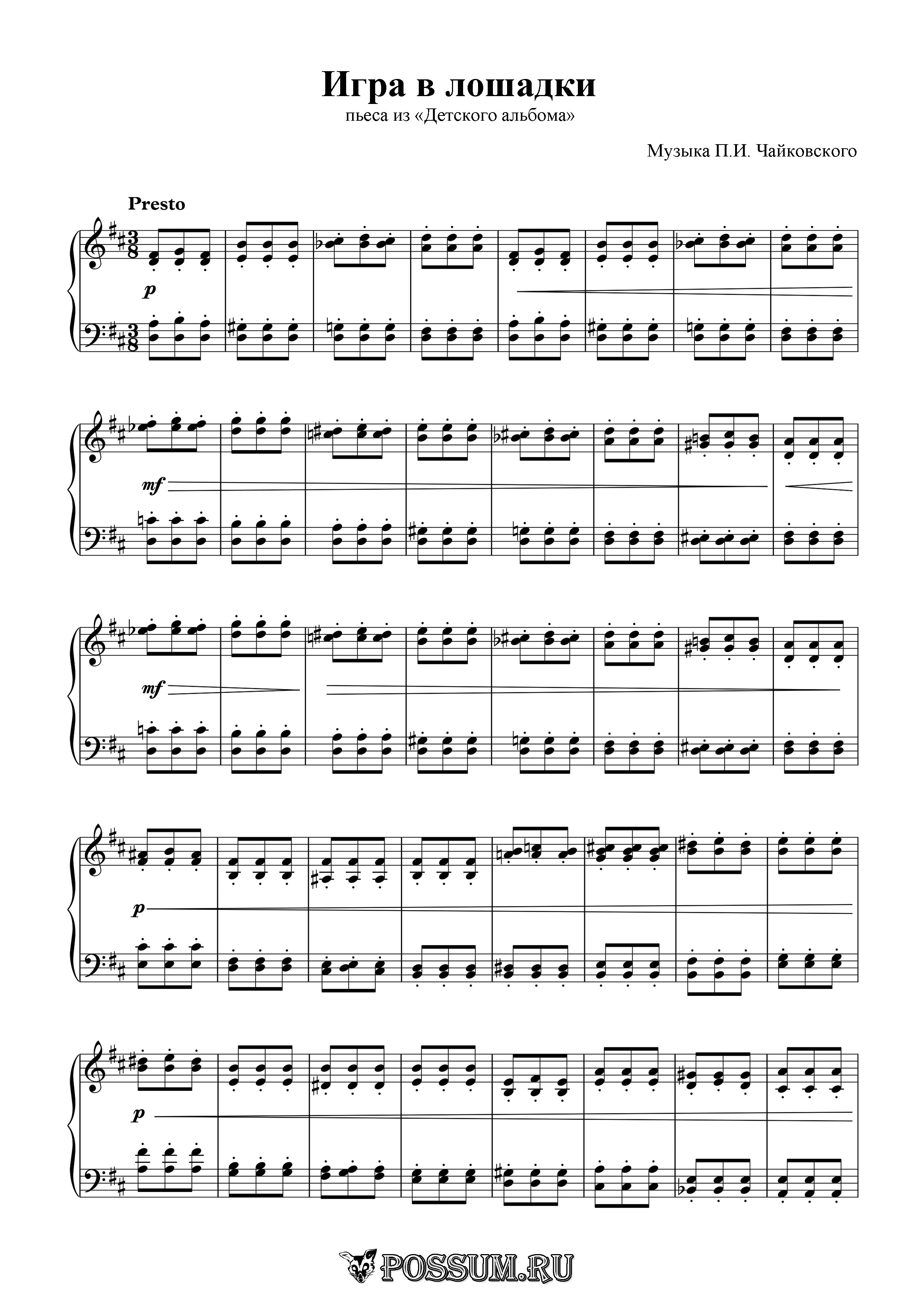 Прослушать и скачать фонограмму пьесы «Игра в лошадки» из «Детского альбома» П.И. Чайковского фортепианная версия: